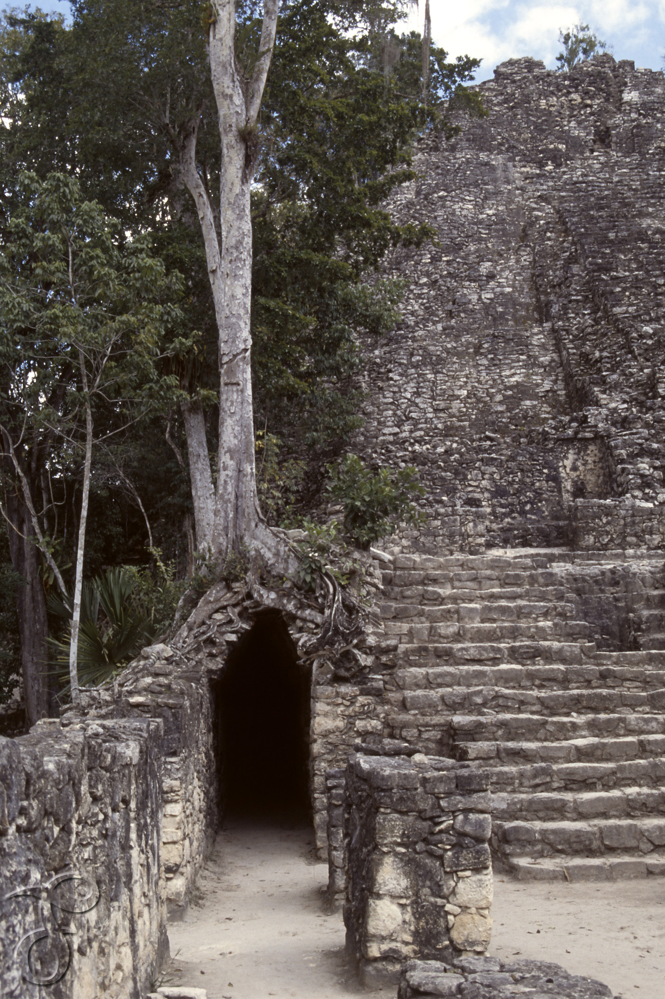 COBÁ: An aisle at a side of one of the ruins of the Cobá archeological site, state of Quintana Roo (Mexico). This is how the jungle took back this huge city of about 50 sqkm (40000 inhabitants) which was an important centre of trade and had probably an alliance with Tikal (Petén, Guatemala). Cobá was abandoned like most of the classical cities of the Maya around 900 a.d.... Note: This image was scanned from a slide with Hamrick Vuescan on a Reflecta Crystalscan 7200 (Primefilm PF 7250 U).